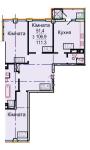 Общая площадь 111 кв. м: кухня-студия 17,7 кв. м, три отдельных комнаты (19 кв. м, 14,7 кв. м и 17,2 кв. м), балкон, два санузла, холл 25,4 кв. м. Двухсторонняя. Окна во двор (на велотрек) в сторону парка Горького и в сторону улицы Ляпунова.