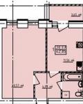 Загальна площа –42,85 кв.м., кухня 11,56 кв.м., кімната 20,57 кв.м. , санвузол, балкон.