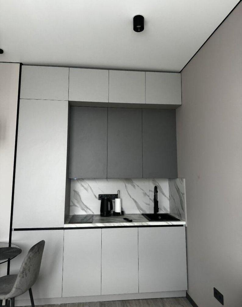 Загальна площа - 35 кв.м: кухня 8 кв.м, 1 кімната, 1 балкон, 1 суміжний санвузол.Стеля: 3м.