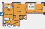 Загальна площа - 58,7 кв.м, 2 кімнати- 16,93 кв.м та 10,55 кв.м, кухня- 16,09 кв.м, 2 санвузла - 3,57 кв.м та 2,1 кв.м, лоджія- 1,82 кв.м,передпокій- 7,84 кв.м.