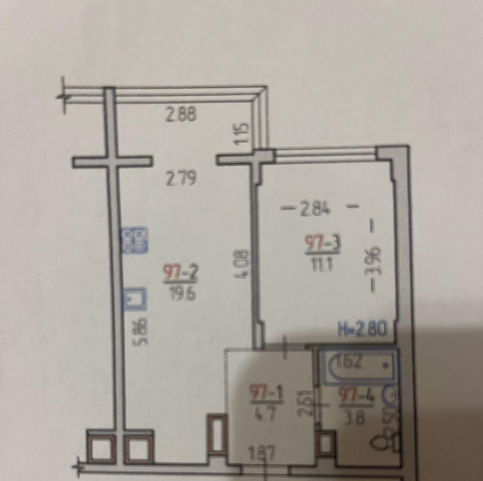 кухня 19,2 кв.м, окрема кімната, суміжний вбиральня, передпокій.