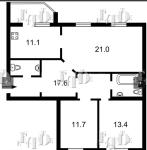 Загальна площа - 87,4 кв.м: