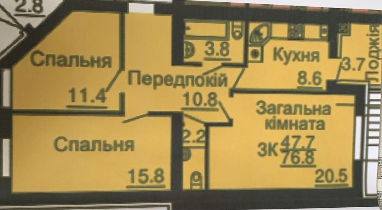 Загальна площа: 76.8 м²