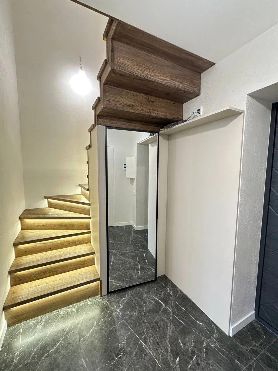 У квартирі виконан якісний та євроремонт. Індивідуальне газове опалення. Підігрів підлоги: на кухні, в санвузлах та коридорі. Сходи на 2 поверх із масиву дуба. Продається з сучасними меблями та технікою.