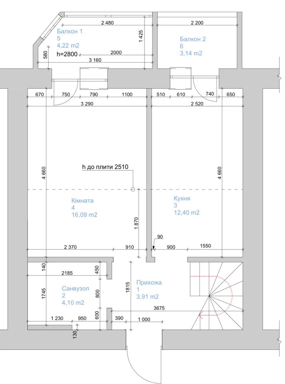 Загальна площа - 60 кв.м: