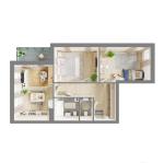 Особливості планування: 2 окремі кімнати, 1 балкон, 1 роздільний санвузол, передпокій.