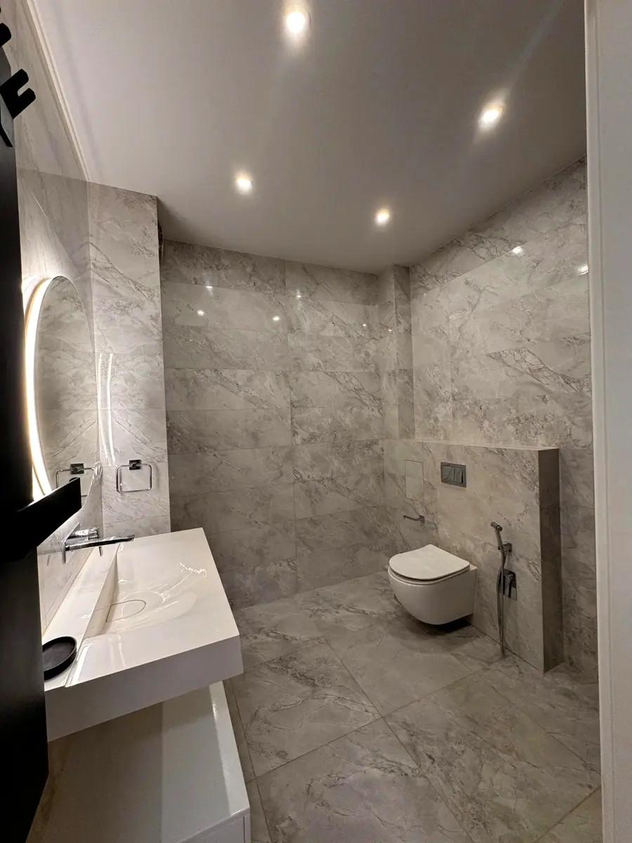 Загальна площа - 80 кв.м: кухня-вітальня, 2 окремі кімнати, 2 санвузла, гардеробна, передпокій.