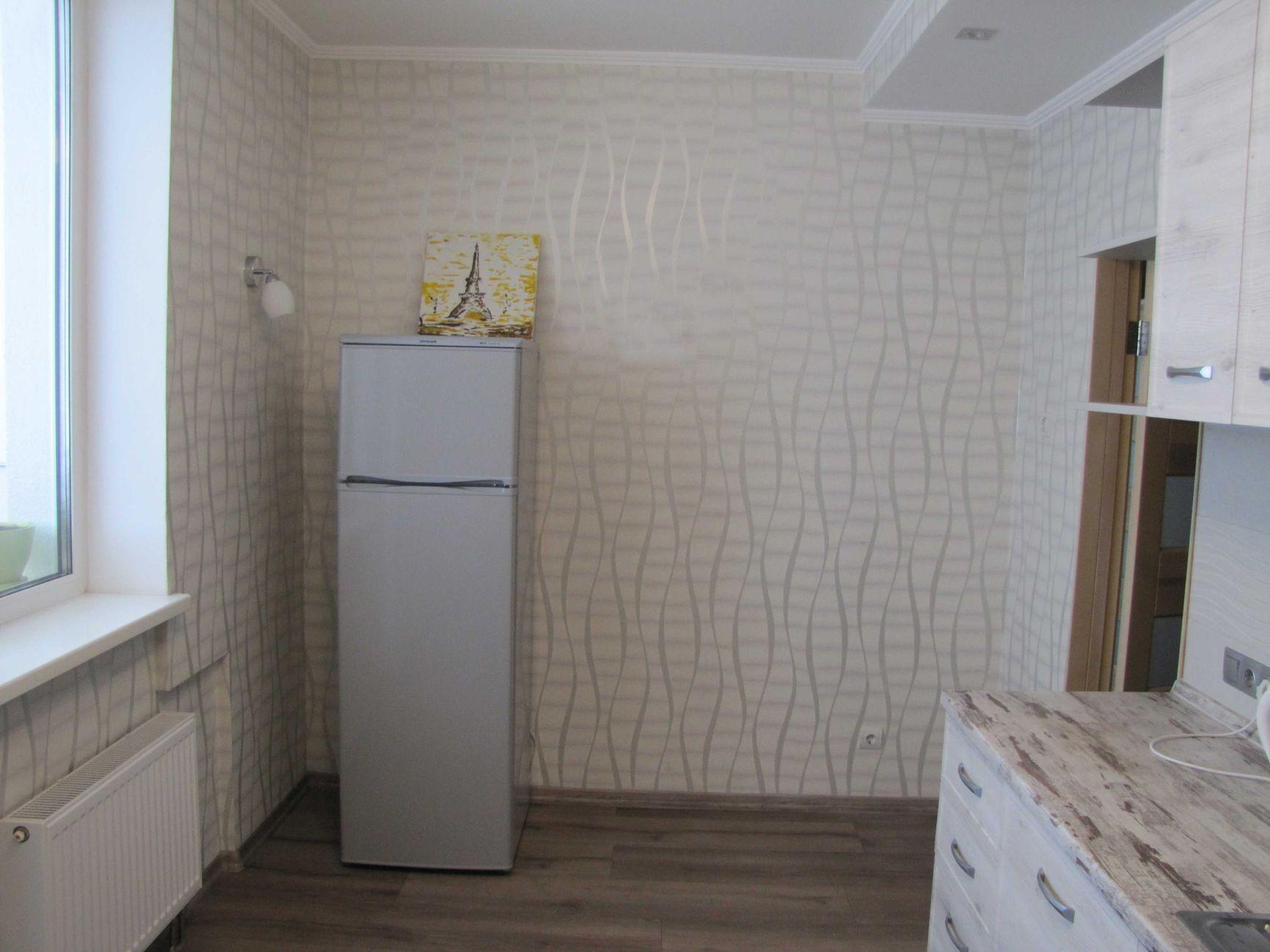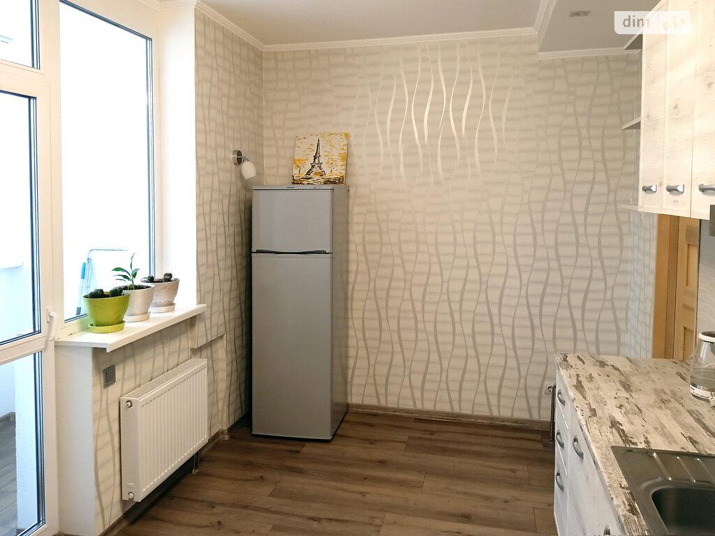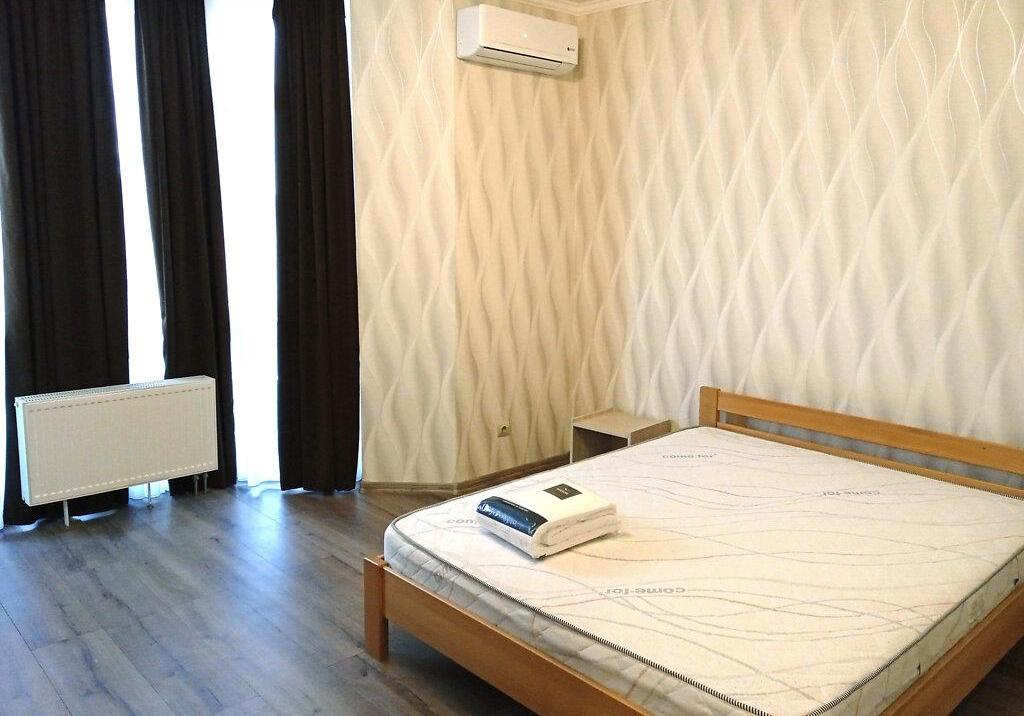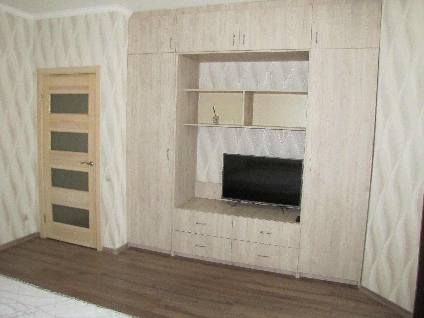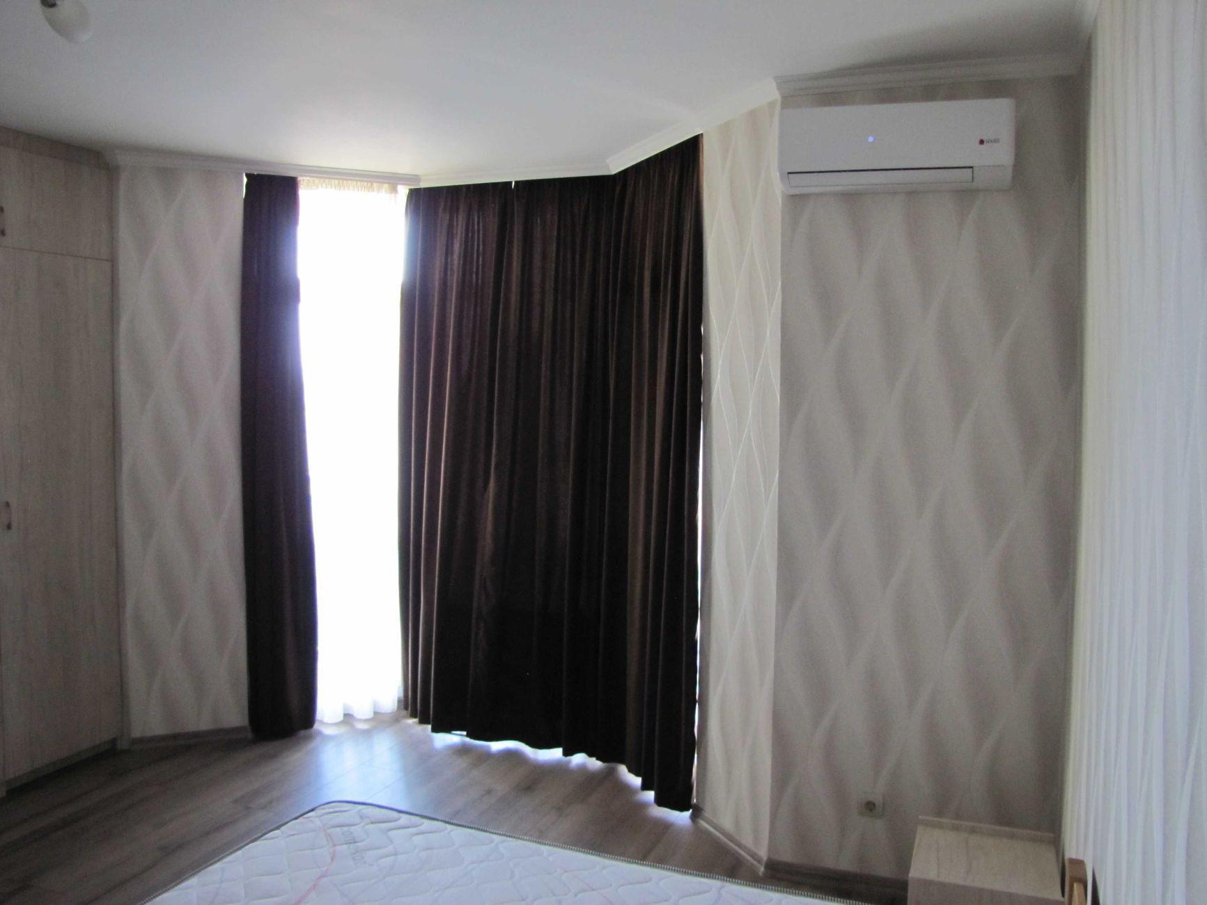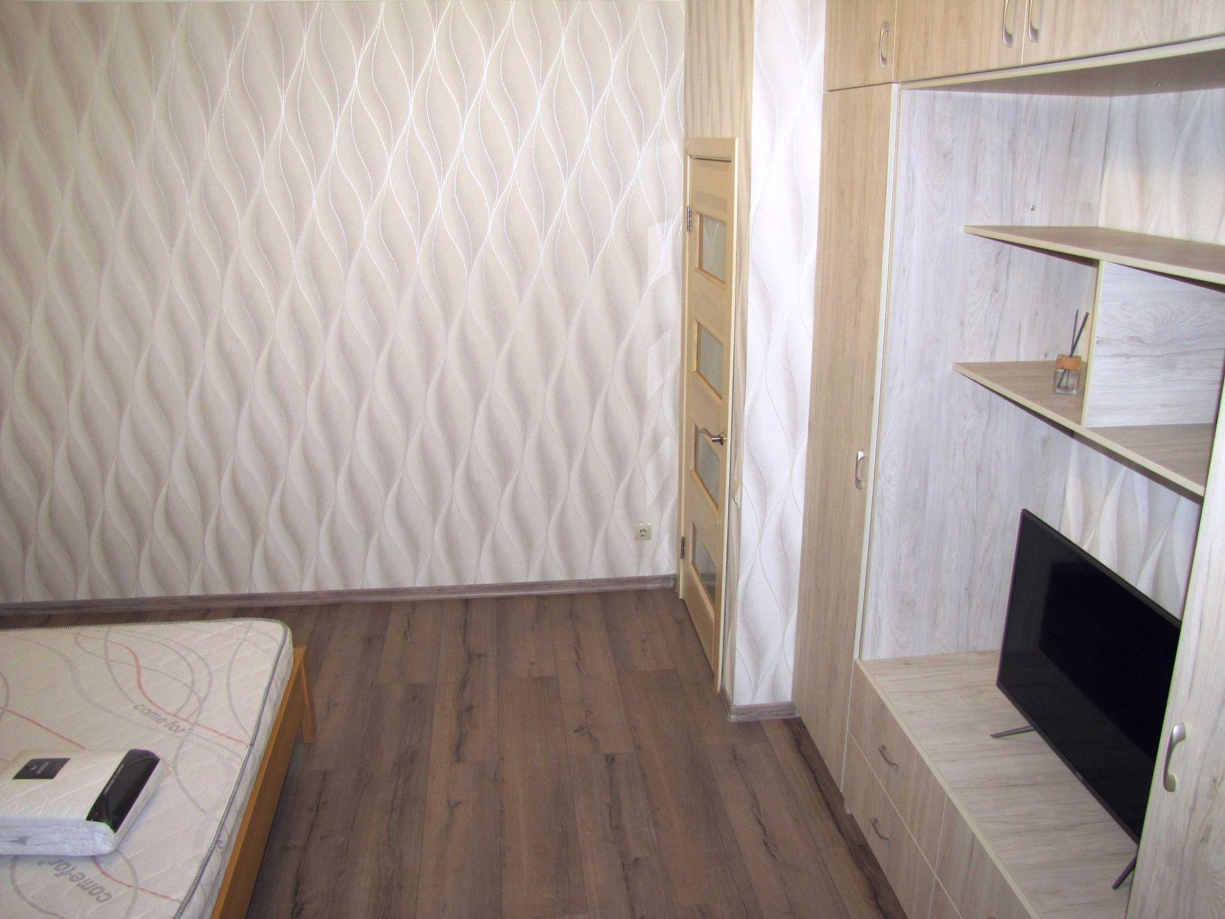 1-кімнатна квартира (не студія) з великою кімнатою (20м2) та окремою кухнею 14 м2. Новий будинок з власною закритою територією. Дитячий майданчик та автомобільний паркінг з автоматичними воротами доступу. На вході консьєрж та відео нагляд. Квартира розташована в центрі будинку. Вікна квартири виходять в тихий двір. В кімнаті панорамне вікно і вихід на балкон. Сучасні меблі – вбудована шафа та двоспальне ліжко з натурального дерева з якісним двостороннім ортопедичним матросом, телевізор, кондиціонер. Простора кухня з заскленою лоджією. На кухні є меблі з вбудованою технікою. Зроблене робоче місце для IT. Є можливість розмістити диван. В ванній кімнаті розміщена повноцінна чавунна ванна, бойлер з програмним регулюванням температури води, пральна машина. Зручне розташування. Поруч ринок, магазини, аптеки, банки, кафе.