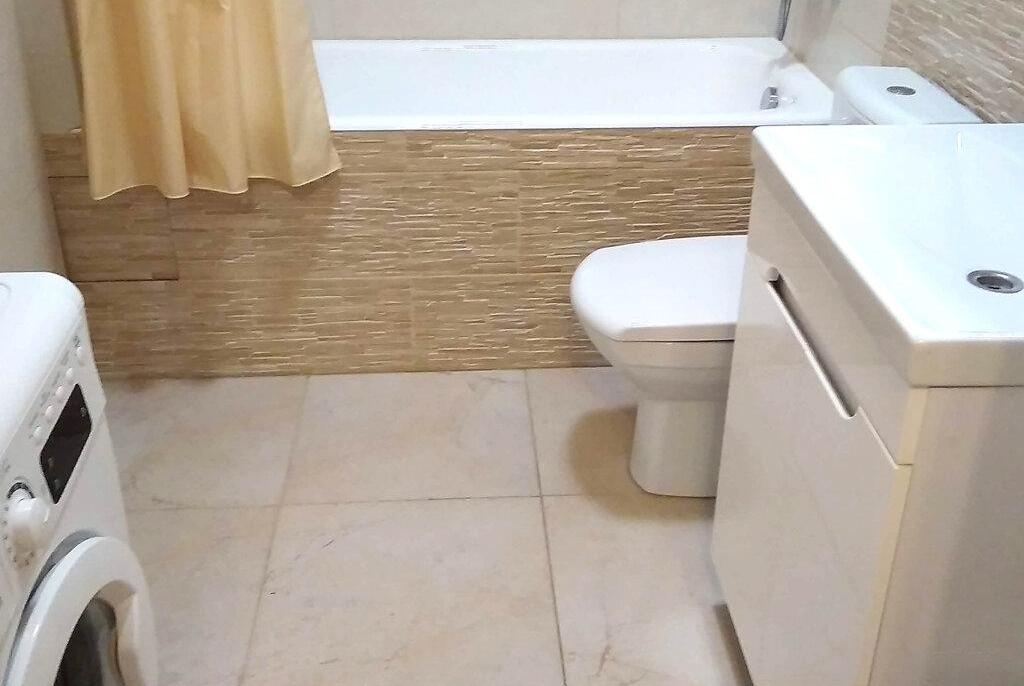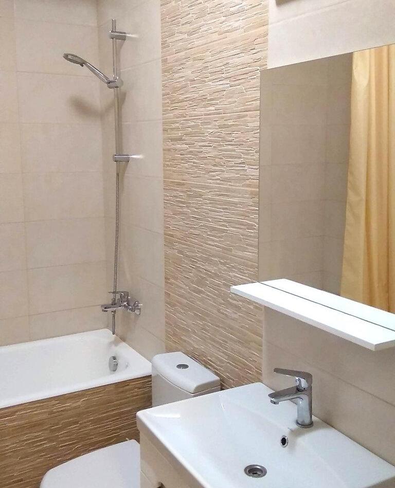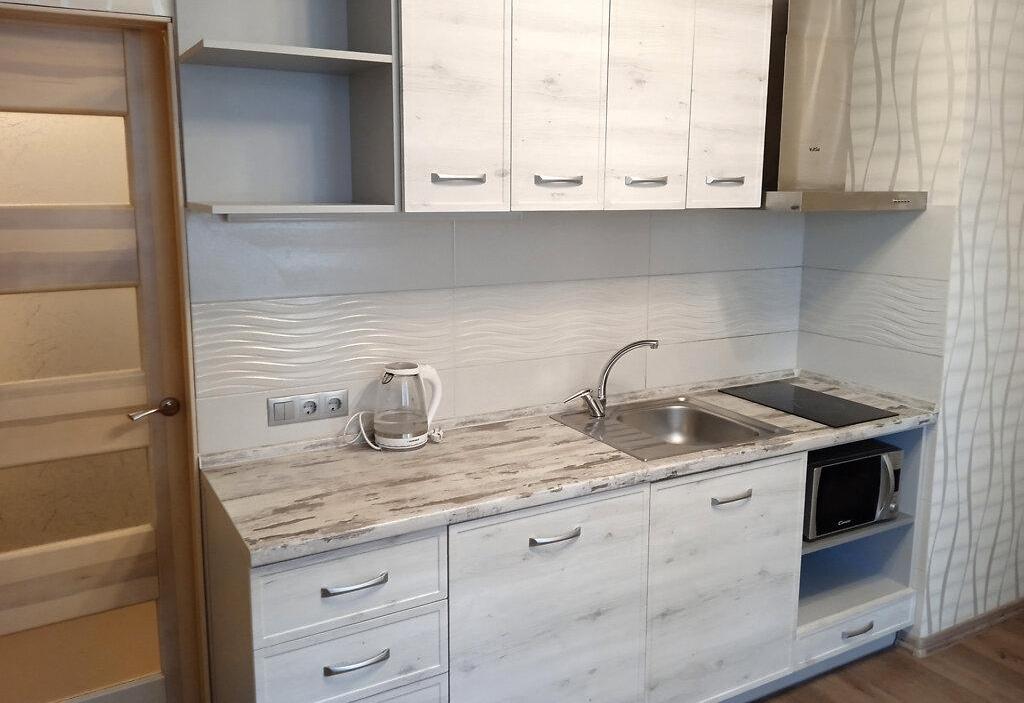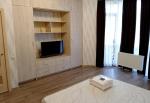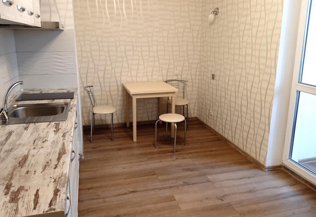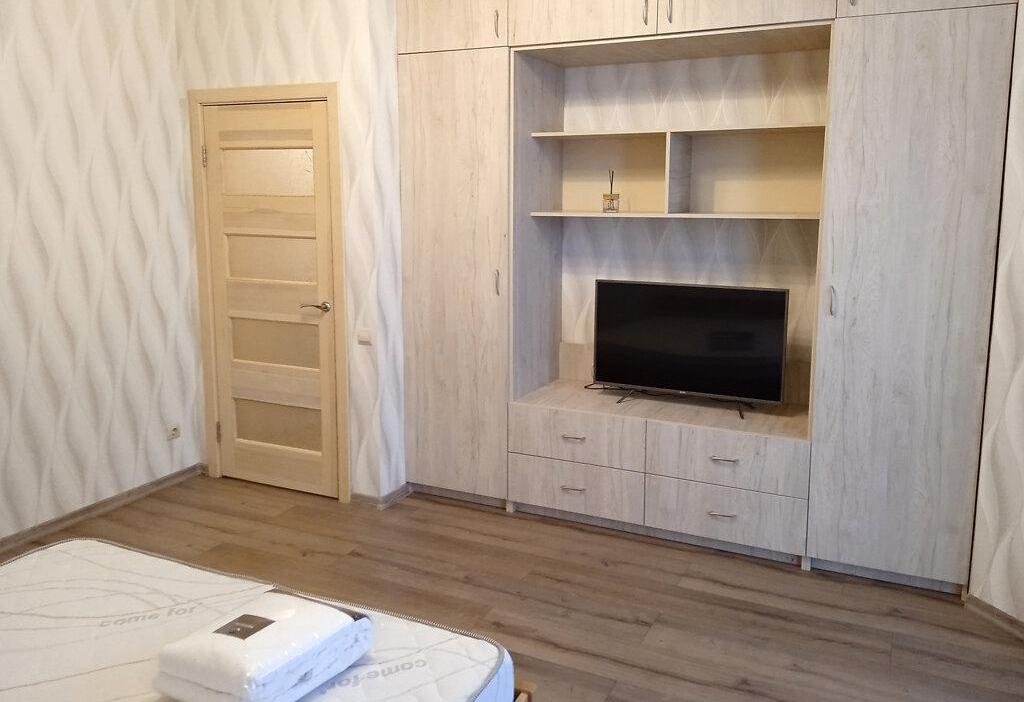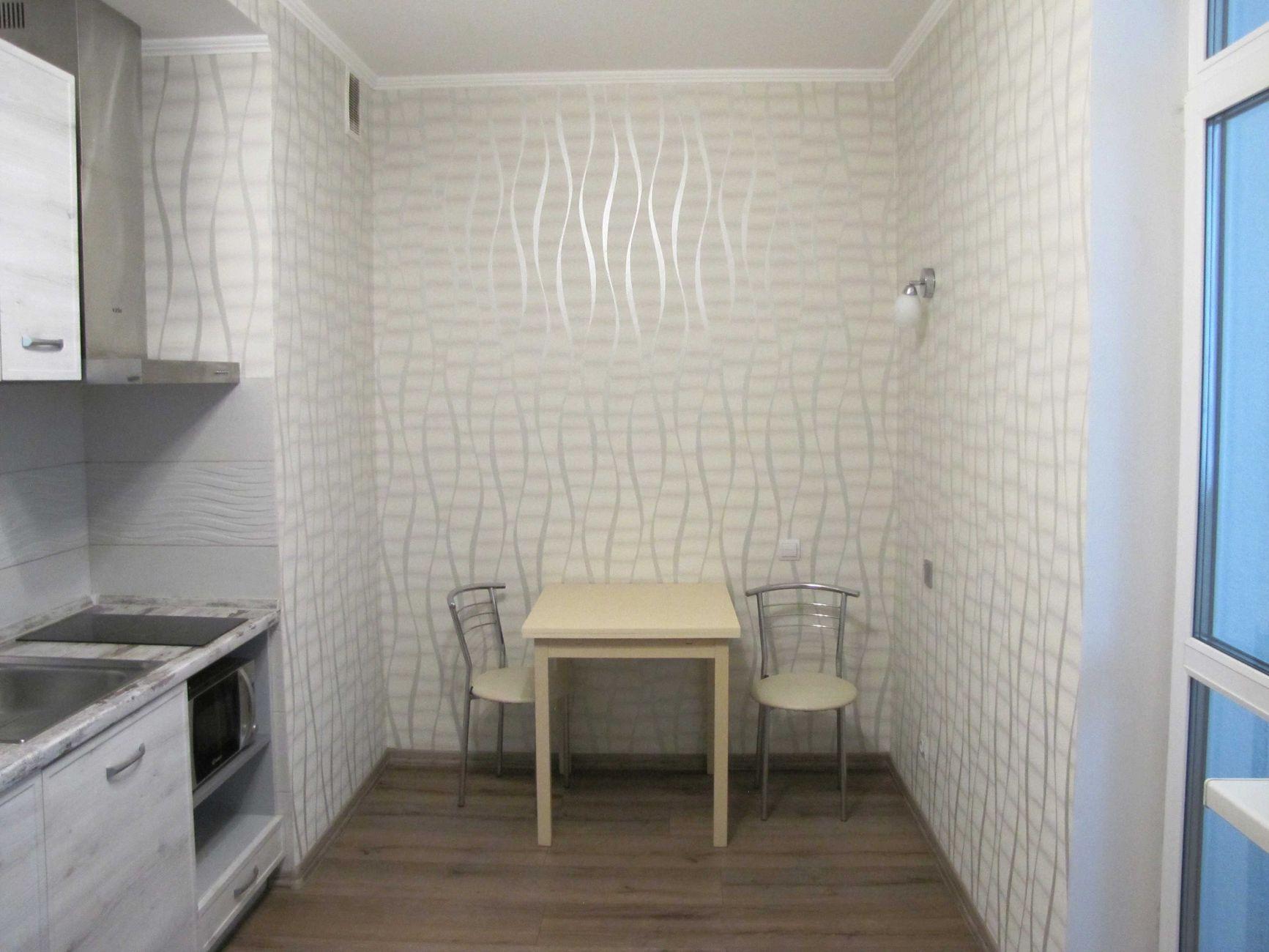 1-кімнатна квартира (не студія) з великою кімнатою (20м2) та окремою кухнею 14 м2. Новий будинок з власною закритою територією. Дитячий майданчик та автомобільний паркінг з автоматичними воротами доступу. На вході консьєрж та відео нагляд. Квартира розташована в центрі будинку. Вікна квартири виходять в тихий двір. В кімнаті панорамне вікно і вихід на балкон. Сучасні меблі – вбудована шафа та двоспальне ліжко з натурального дерева з якісним двостороннім ортопедичним матросом, телевізор, кондиціонер. Простора кухня з заскленою лоджією. На кухні є меблі з вбудованою технікою. Зроблене робоче місце для IT. Є можливість розмістити диван. В ванній кімнаті розміщена повноцінна чавунна ванна, бойлер з програмним регулюванням температури води, пральна машина. Зручне розташування. Поруч ринок, магазини, аптеки, банки, кафе.