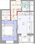 Загальна площа –47, 3м.: кухня-вітальня 15 кв.м., 1 окрема кімната, 1 санвузол.