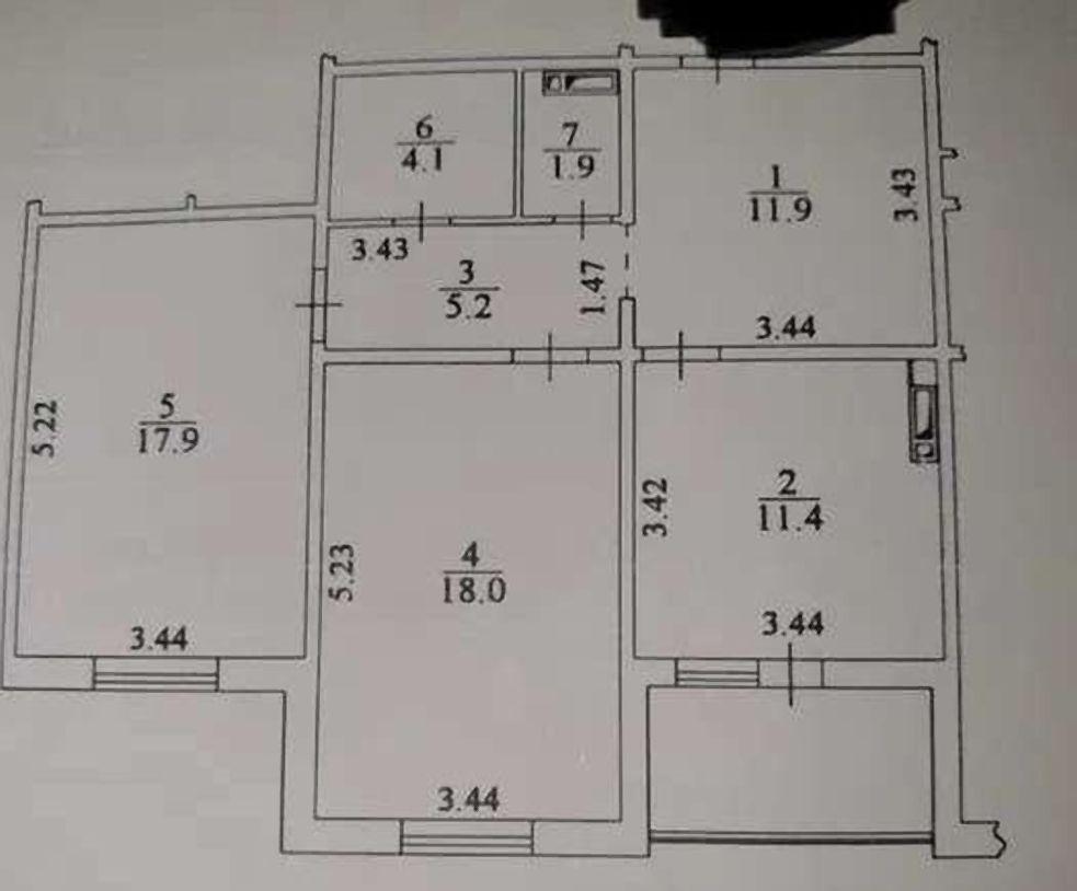 Загальна площа - 72 кв.м: кухня 12 кв.м, 2 окремі кімнати, 1 балкон, 1 роздільний санвузол.