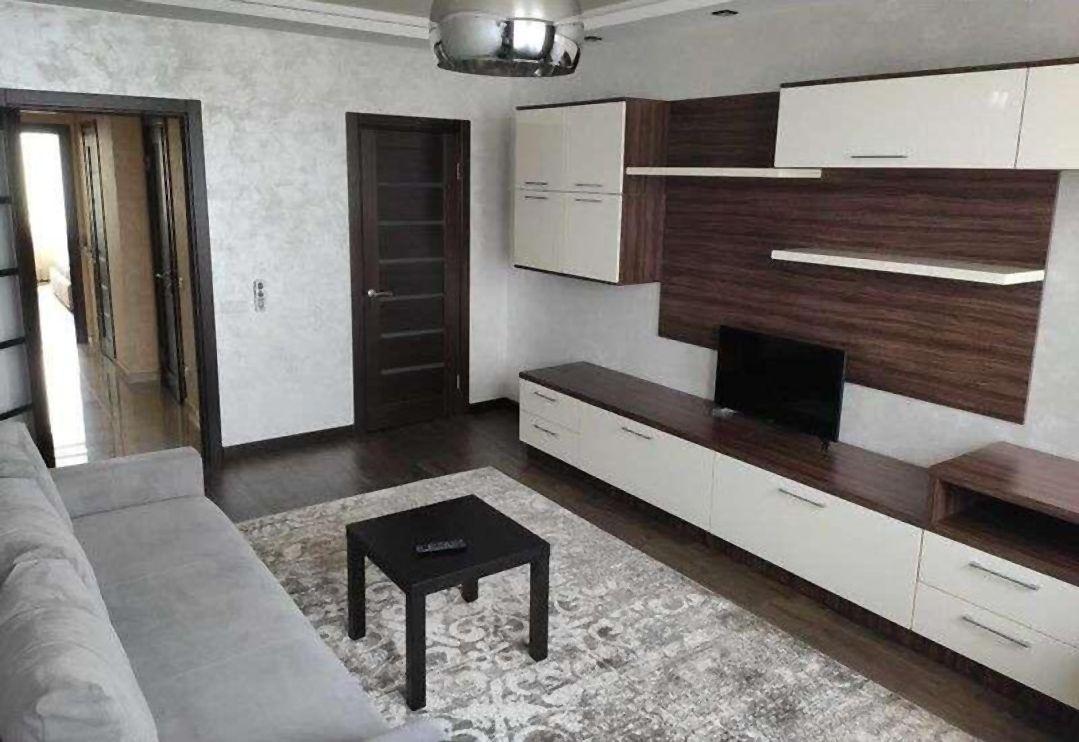 Вітальня: 3-місний розкладний диван Pufetto; дизайнерська стінка з письмовим столом; телевізор Samsung; інверторний кондиціонер Cooper&Hunter.