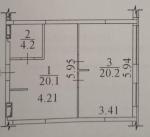 кухня 20,2 кв.м, 1 окрема кімната, 1 суміжний санвузол.