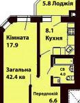Загальна площа - 42,4 кв.м: