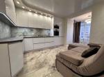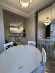 У видовій квартирі з двома терасами виконан авторський ремонт. Індивідуальне газове опалення. Підігрів підлоги. Продається з сучасними меблями та технікою.