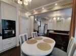 У дворівневій квартирі виконан дизайнерський ремонт. Підігрів підлоги. Продається з сучасними меблями та технікою.