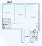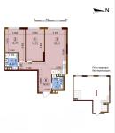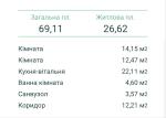 Загальна площа - 69,11 кв.м: кухня-вітальня 22,11 кв.м, 2 окремі кімнати (14,15 кв.м та 12,47 кв.м), 2 санвузла, коридор.
