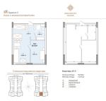 Загальна площа - 56,5 кв.м.,кухя-вітальня- 27 кв.м, кімната- 15,76 кв.м.