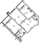 Загальна площа - 80,5 кв.м: кухня 13,8 кв.м, 2 окремі кімнати (15,7 кв.м та 17,6 кв.м), 2 лоджії, 2 санвузли, передпокій, хол.