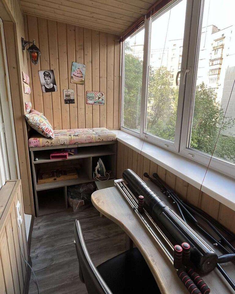 Два утеплені балкони перетворені на затишні житлові зони з теплою підлогою один із них облаштований як робочий кабінет.