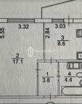 Загальна площа -37 кв.м.: кухня -9 кв.м., кімната 17 кв.м., суміжний санвузол, коридор, балкон.