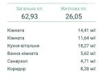Загальна площа 63 м² · житлова 26.05 м² · кухня 18.27 м²
