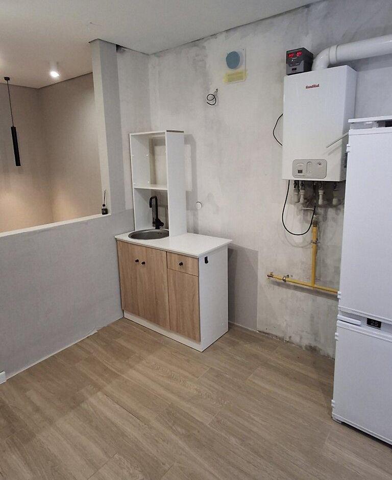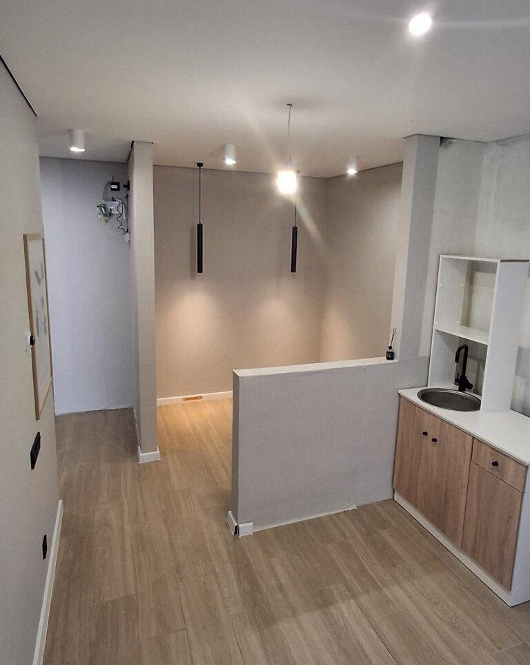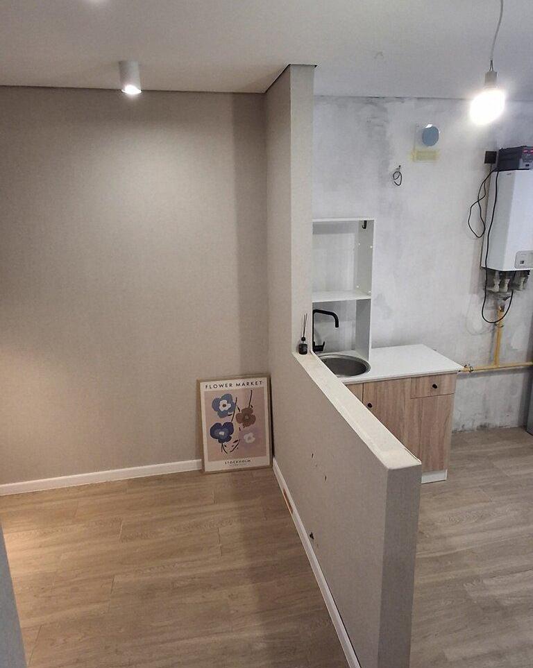 Загальна площа - 40 кв.м: кухня -студія 13.5 кв.м, 1 кімната, 1 балкон, сумісний санвузел.