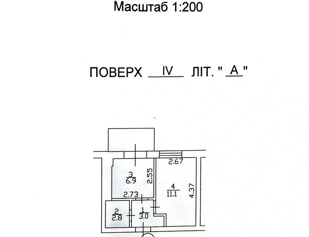 Загальна площа - 25,2 кв.м., кухня 7 кв.м.