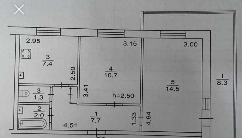 Загальна площа - 51.9 кв.м: