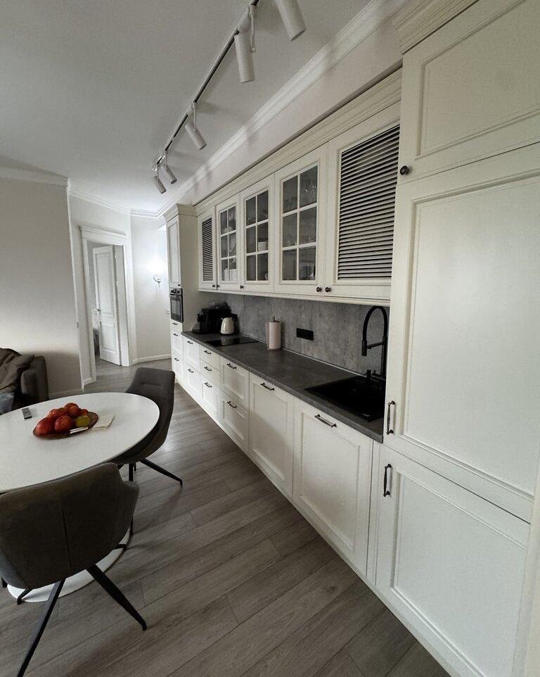 Загальна площа – 78 кв.м: кухня-студія , 2 кімнати, санвузел, передпокій.