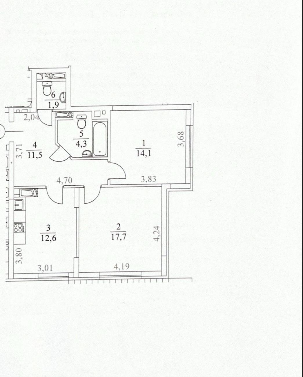 Загальна площа - 62.1 кв.м: