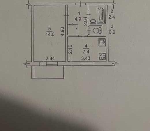 кухня 7.4 кв.м, 1 окрема кімната, 1 балкон, 1 роздільний санвузол, передпокій.