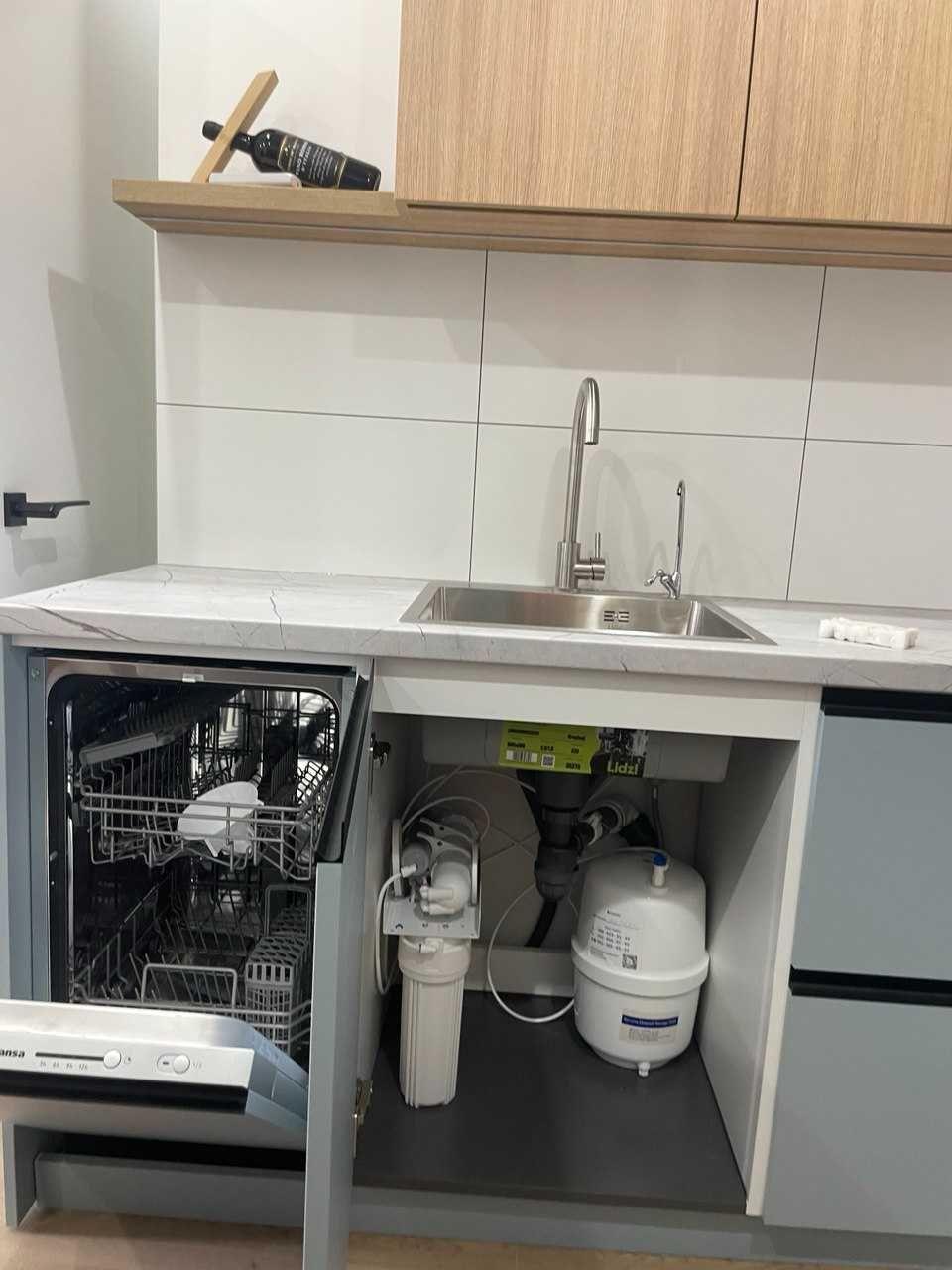 Меблі + техніка: повний комплект побутової техніка- два інвенторні кондиціонери , посудомийна і пральна машини, фільтр очистки води зворотнього осмосу, бойлер . Стіни квартири обезшумлені і мають гарну звукоізоляцію. На кухні є посудомийка , фільтр води Осмос та великий вбудований холодильник Whirpool. Теплий пол в санвузлу . Два трьох секційні шкафи для одягу в коридорі мають достатньо місця для зберігання. Освітлення Fhilips світильники. Стіна з вікном додатково утеплена в спальній кімн