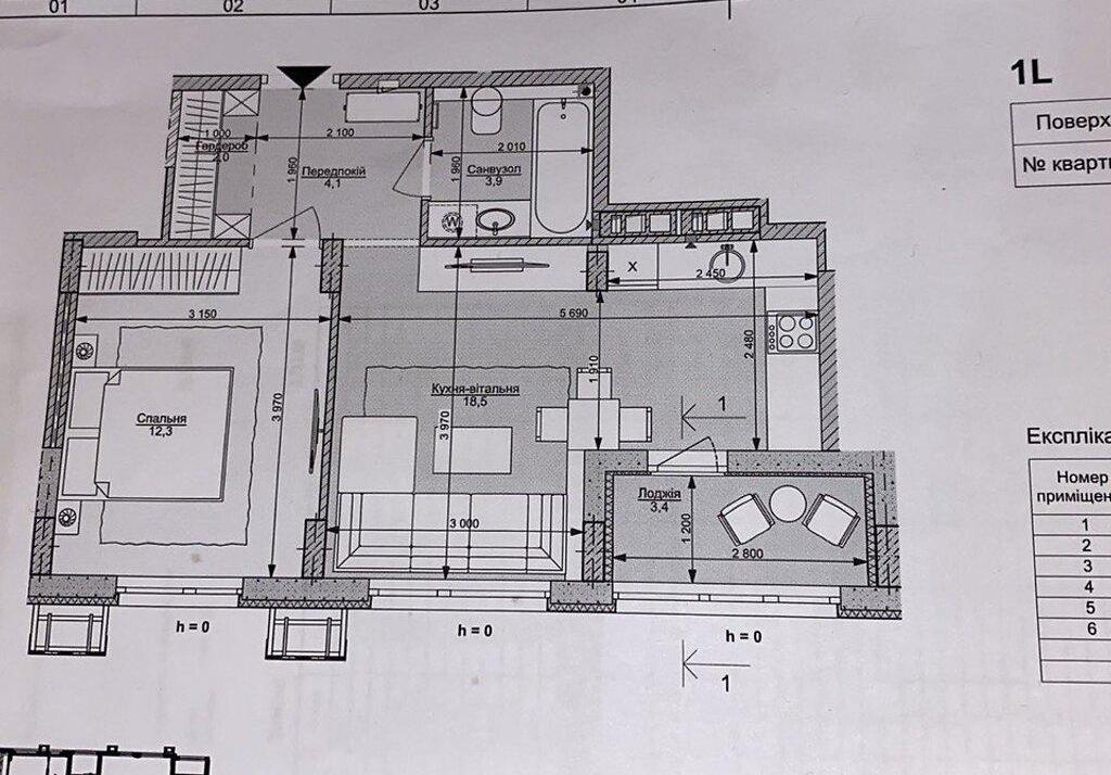 Особливості планування : кухня-вітальня об'єднана з лоджією,висота стелі- 3.6 м,окрема спальня- 12,3 кв.м,1 сан.вузол-3,9 кв.м.