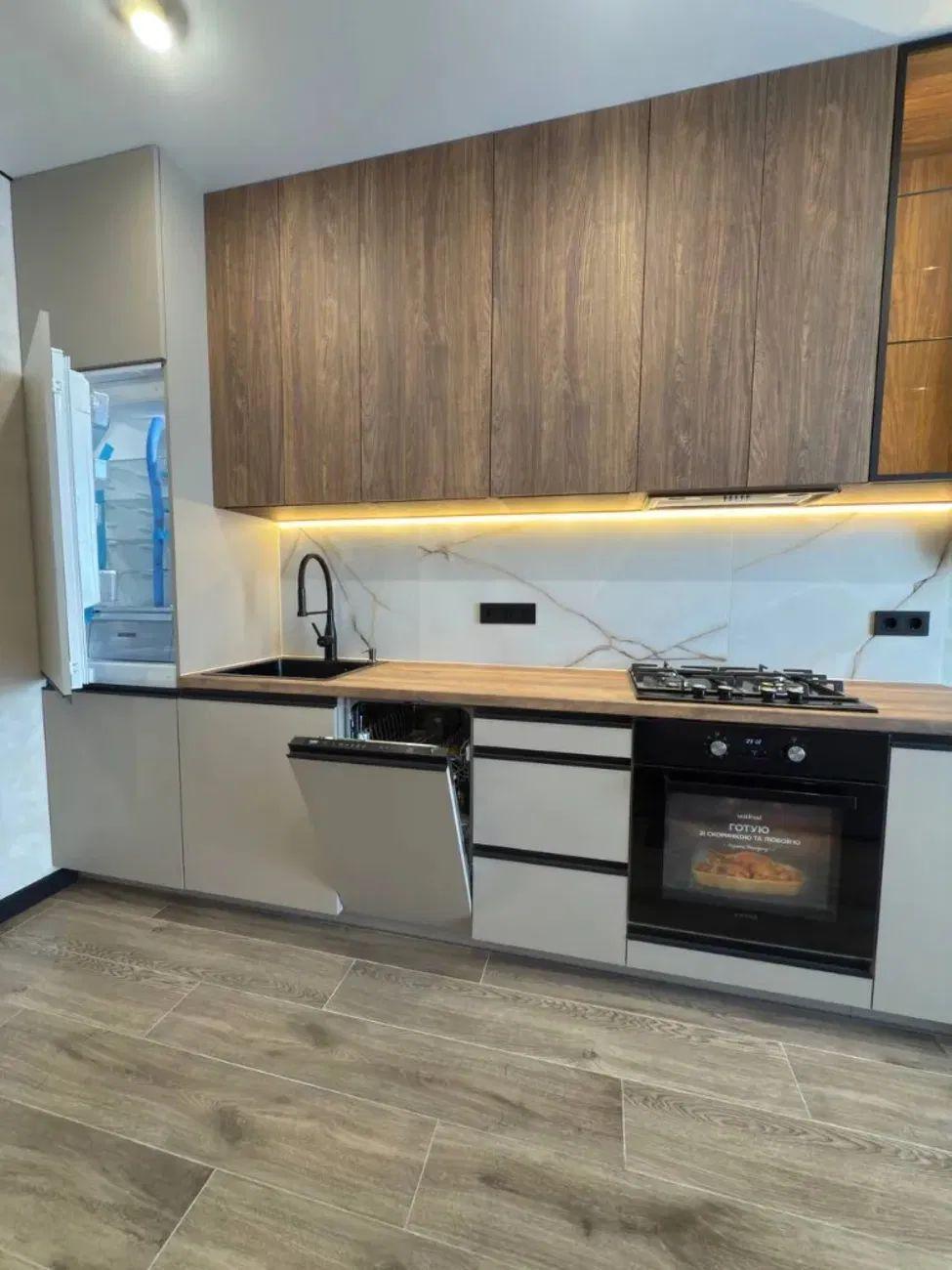 В квартирі виконано євроремонт. Продається з меблями та технікой: Варильна панель, духова шафа, холодильник, пральна машина. Тепла підлога.