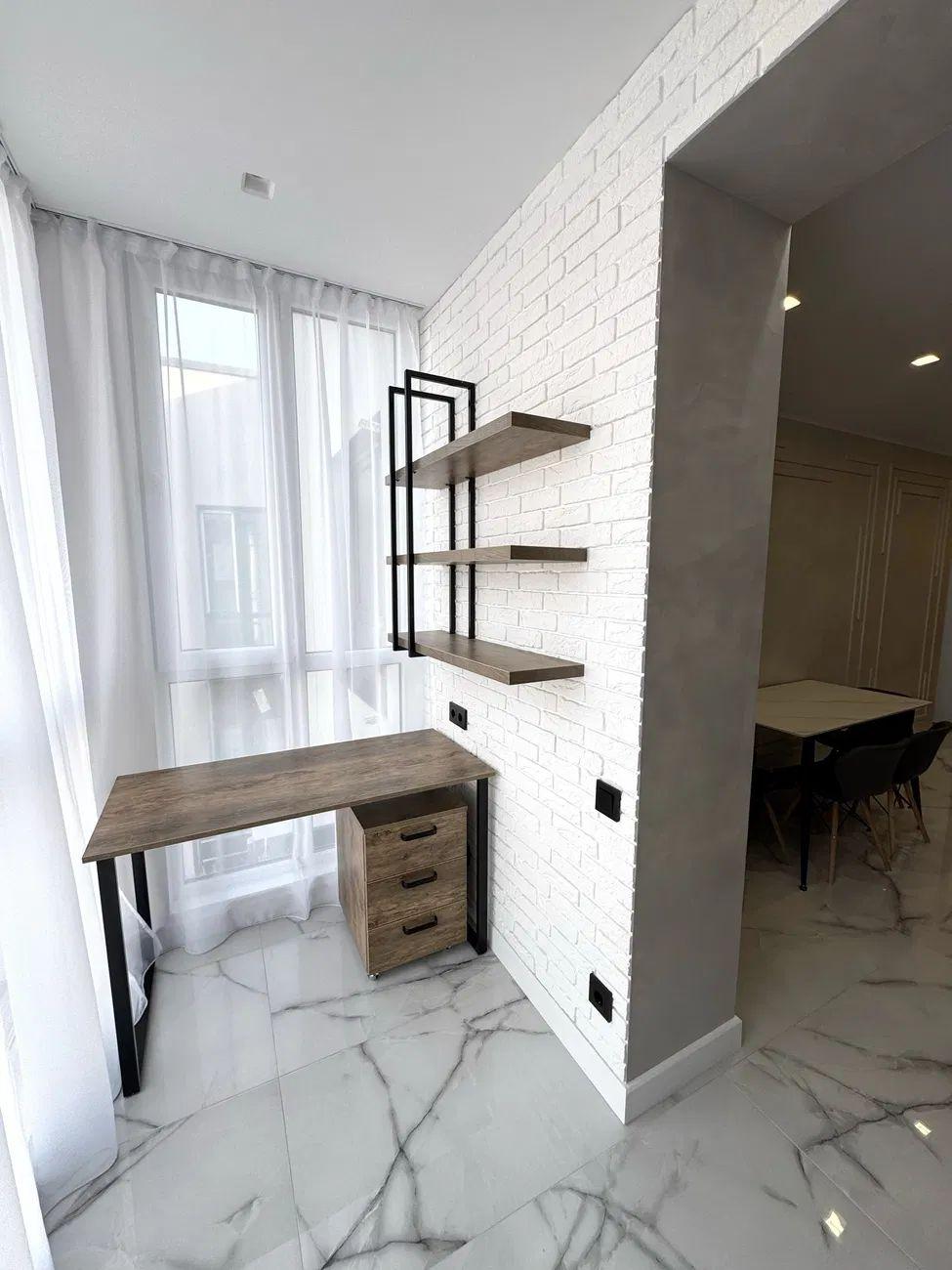 Загальна площа – 43 кв.м.: кухня вітальня 20 кв.м., 1 окрема кімната, суміжний санвузол, гардеробна, лоджія.
