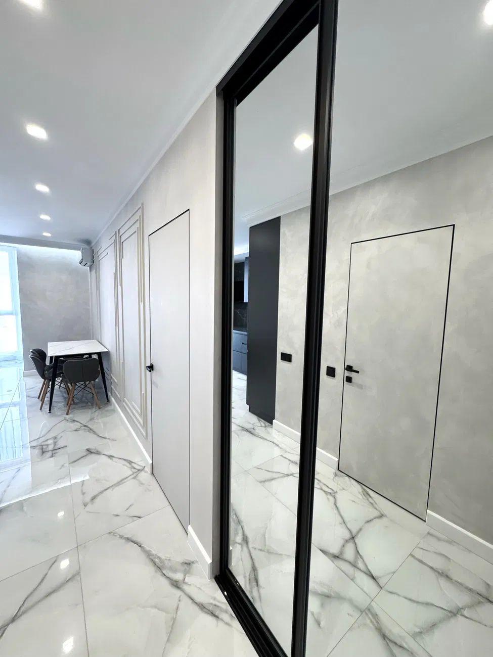 В квартирі виконано євроремонт. Продається з меблями та технікой: Варильна панель, духова шафа, холодильник, пральна машина. Тепла підлога.