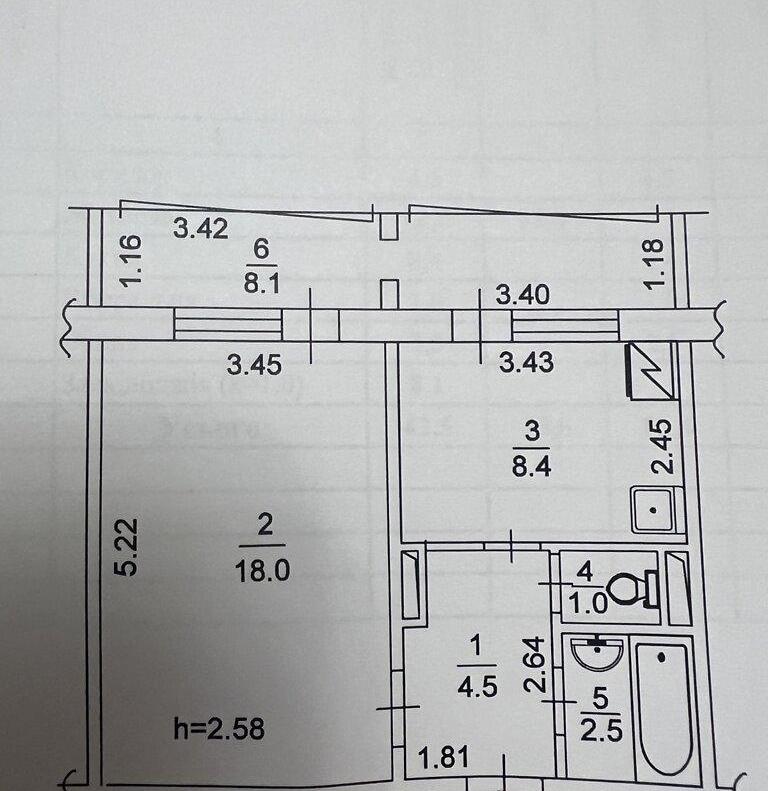 Загальна площа - 42.5 кв.м: