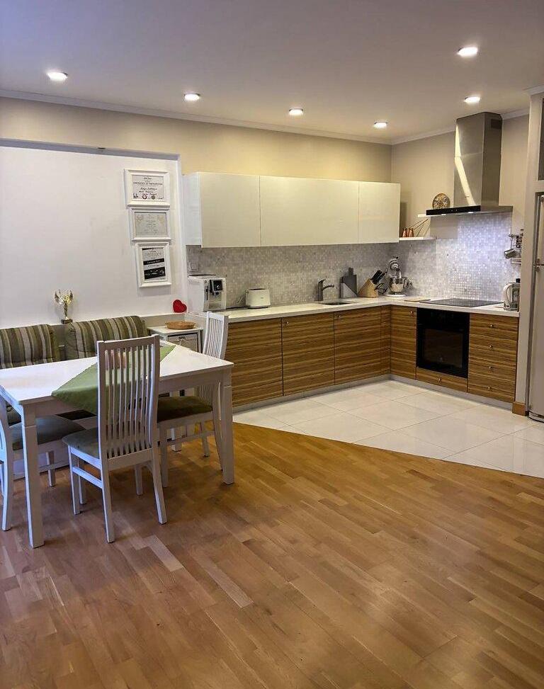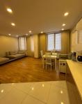 кухня-вітальня 12 кв.м, 2 окремі кімнати, 1 суміжний санвузол, гардеробна, пральна, передпокій.
