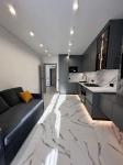 Загальна площа – 45 кв.м.: кухня вітальня 18 кв.м., 1 окрема кімната, 1 санвузол, гардеробна, лоджія.