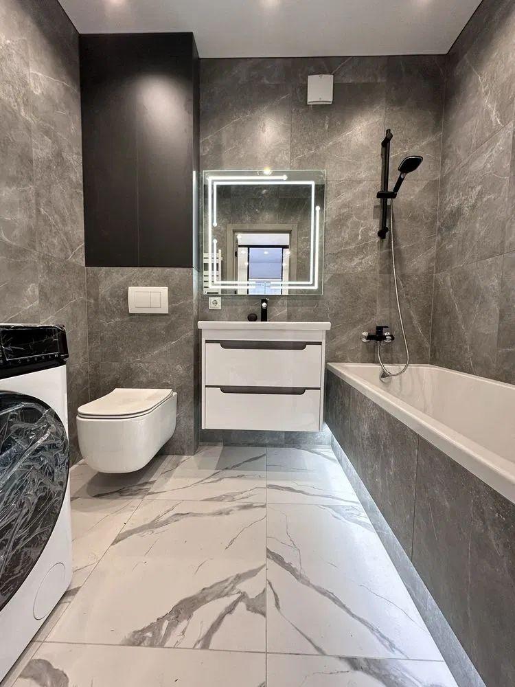 В квартирі виконано євроремонт. Продається з меблями та технікой: Варильна панель, духова шафа, холодильник, пральна машина, посудомийна машина, тепла підлога.