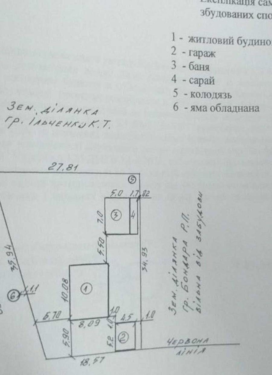 На території є баня, гараж, сарай, огорожа, сад, город.