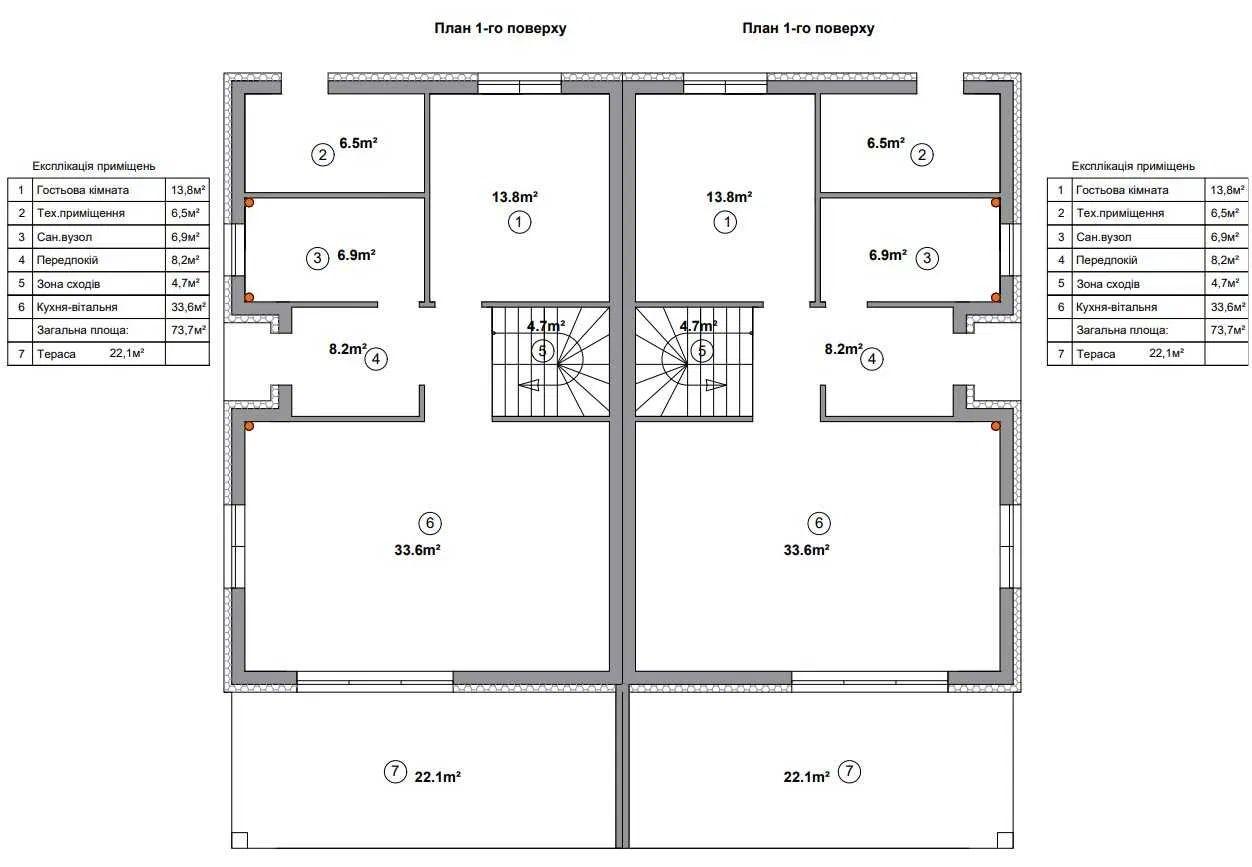 Площа будинку 150 кв м плюс тераса 22кв.м.