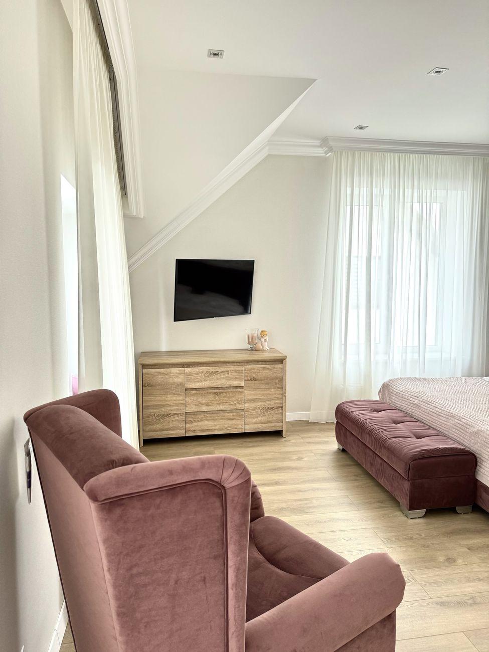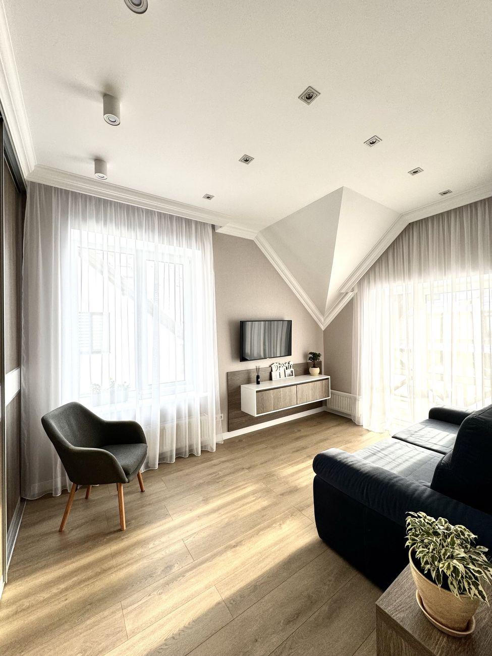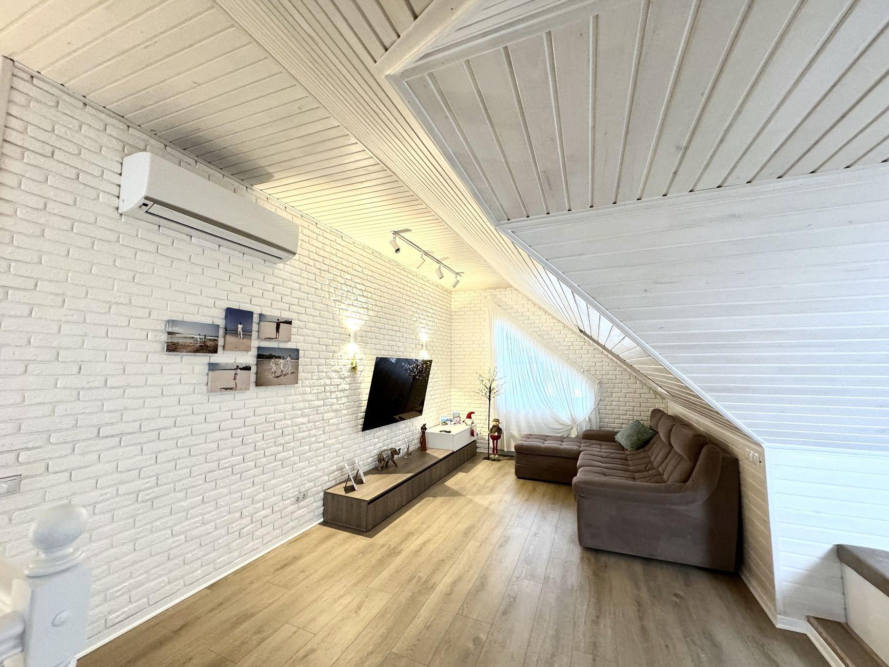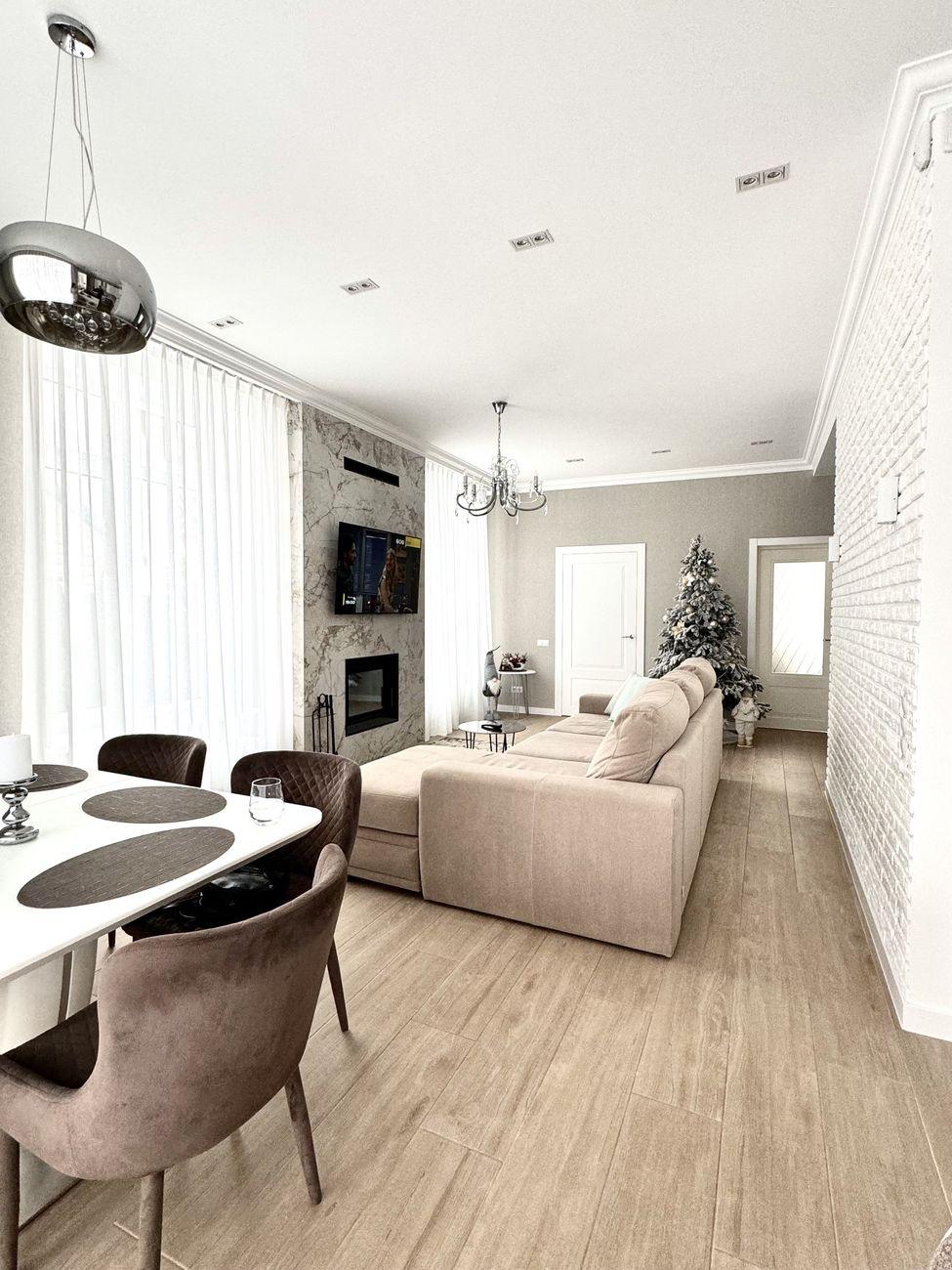 У будинку зроблений дизайнерський ремонт із дорогих якісних матеріалів, італійські меблі, корпусні меблі все на замовлення, дорога техніка, сходи з натурального дерева.
