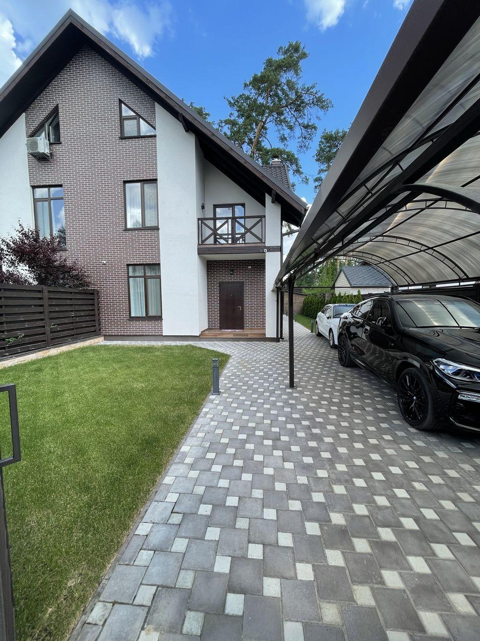 На теріторії дизайнерський ландшафт з автополивом, туї, ялинки, красиві насадження, зона барбекю, невелике господарське приміщення, де зберігається весь інвентар, навіс для авто. У будинку встановлено фірмову зарядку для електромобіля.