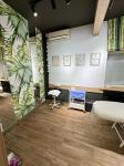 3 локальні зони в кожній своя мокра точка, кондиціонери, система вентиляції, кварцевальні лампи, музикальний супровід в кожній окремій зоні. Ресепшен, зона очікування -9,7 кв.м. Санвузол 1,7кв.м. Кімната для персоналу -2,9 кв.м.